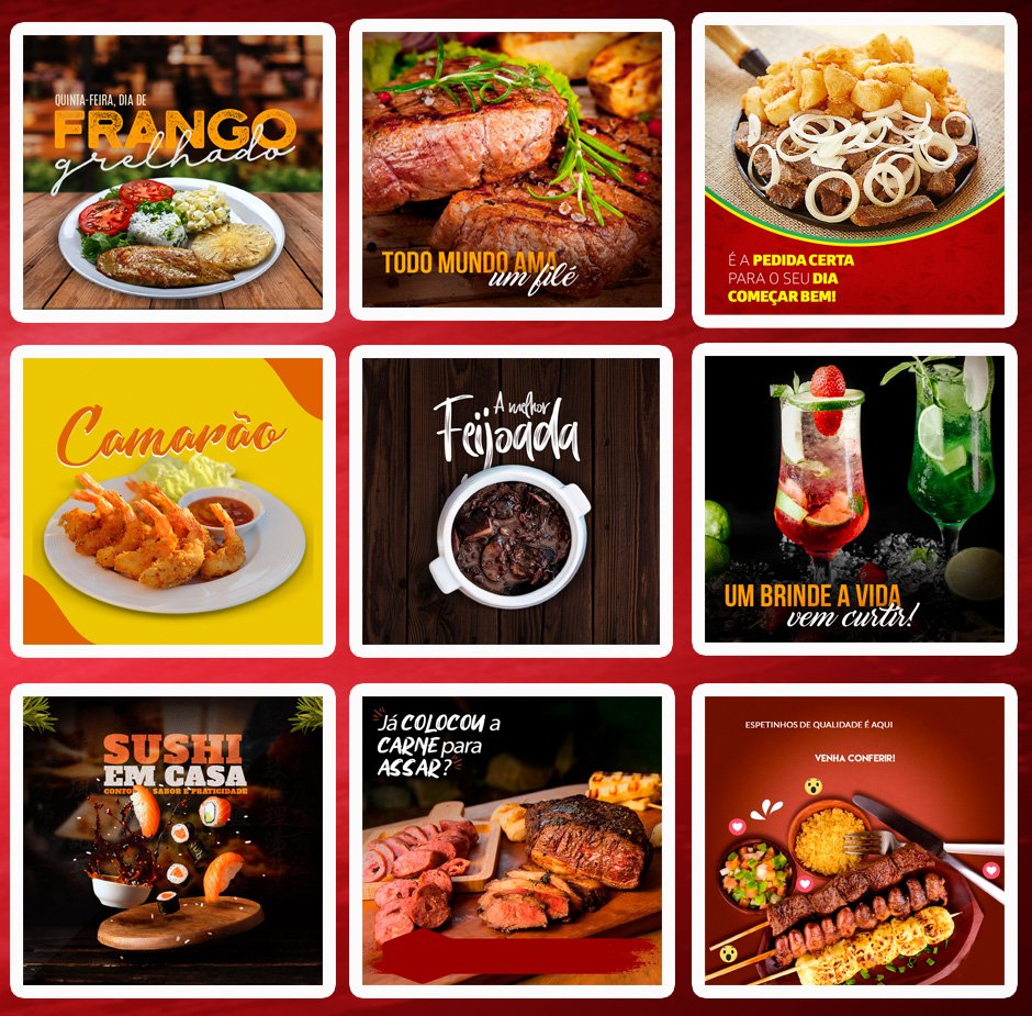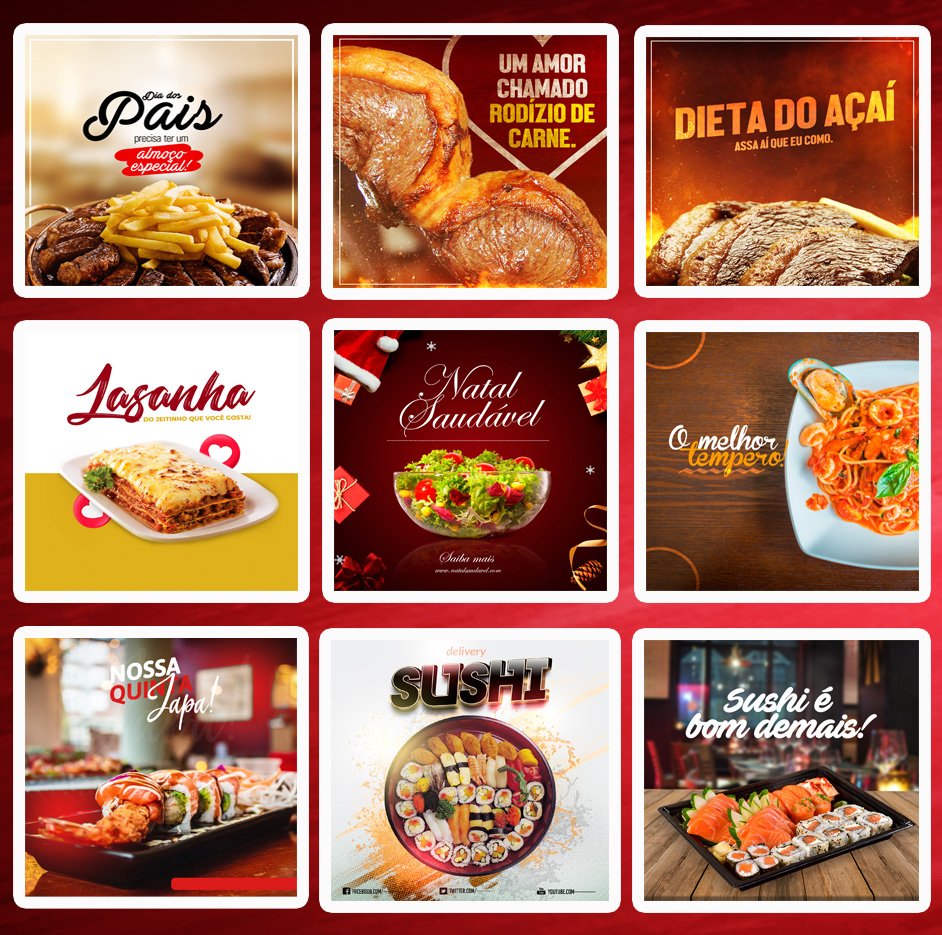 Mega Pack Restaurante Editáveis no Photoshop, é um Pack com artes editáveis pronto para você colocar sua logomarca, substituir núcleos, textos, acrescentar algo ao seu gosto e divulgar onde quiser e nas suas redes sociais.