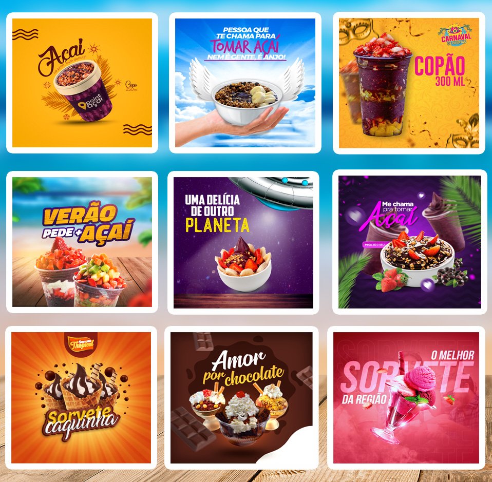 SUPER PACK SORVETERIA E AÇAITERIA EDITÁVEIS NO PHOTOSHOP