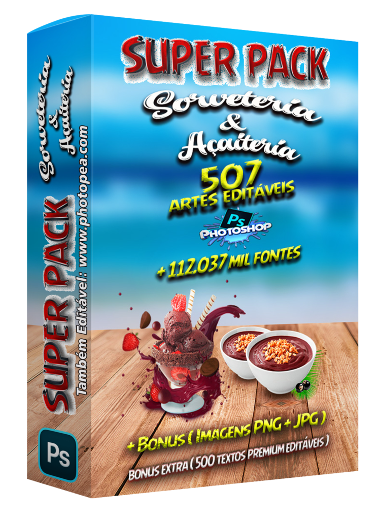 O QUE É SUPER PACK SORVETERIA E AÇAITERIA EDITÁVEIS NO PHOTOSHOP ?