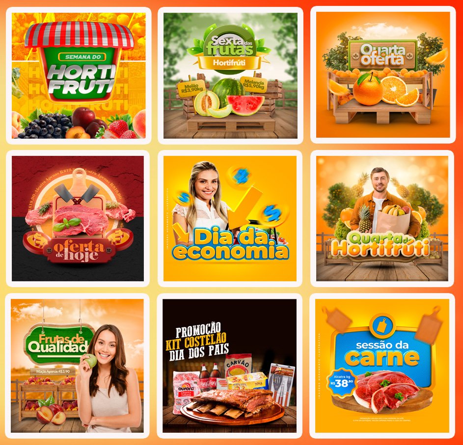 SUPER PACK SUPERMERCADO E HORTIFRUTI EDITÁVEIS NO PHOTOSHOP